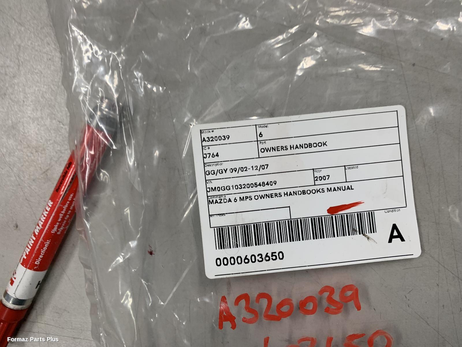 MAZDA 6 MPS OWNERS HANDBOOKS MANUAL SERVICE BOOK PHOTOGRAPHED: 603650